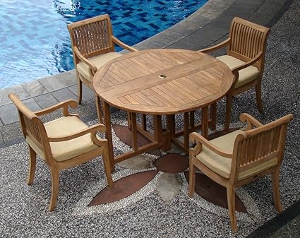 Amazon Com Teakstation 4 Seater Grade A Teak Wood 5pc Dining Set 48 Round Butterfly Table And 4 Giva Arm Chairs Tsdsgv2 Outdoor And Patio Furniture Sets Garden Outdoor from images-na.ssl-images-amazon.com Teak furniture begins with a warm, golden color, eventually fading to a silvery gray patina as it is left outdoors over time. $2,910 (mililani) pic hide this posting restore restore this posting. Perrie round teak folding outdoor side table. Teak wood is known for its exceptional strength and weather resistance, making it far more suitable for garden furniture than any other kind of wood. Outfit your space with teak furniture. The natural oil present within teak wood offers it protection from pests such as termites. The oil also keeps water from seeping into the wood. Teak wood is known for its durability, sturdiness and strength.